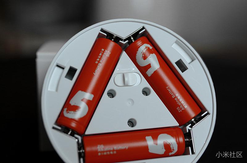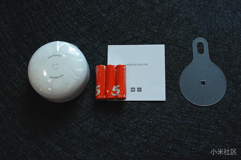 按顺序开启包装,取出产品说明书便能看到米家感应夜灯真身了,光滑美观的弧形面罩上贴着保护膜,附送三颗橙色紫米5号碱性电池,赞一个!