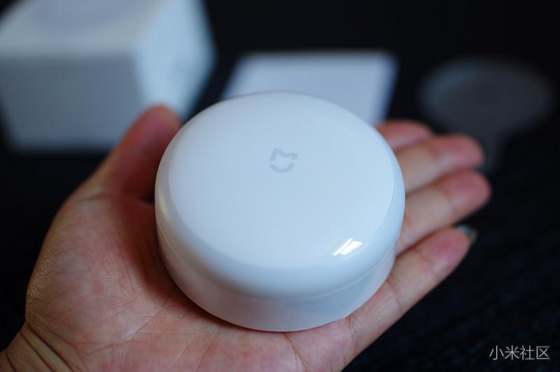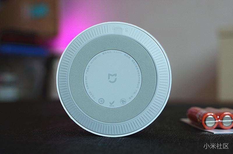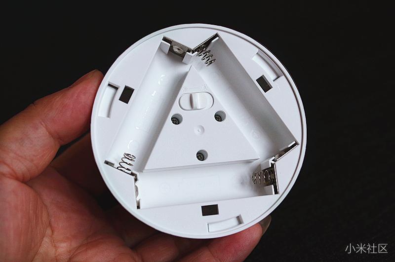 取出米家感应夜灯放在掌心,在没有安装干电池的状态下手感并不沉,大白机身中间点缀着米家LOGO,这款感应夜灯并没有采用主流的整体透光前面罩设计,而是采用类似于三段式的设计,柔光罩仅为边缘区域,感应区域被巧妙的隐藏在LOGO下面,这也是为了避免直射保护视力而为之。不得不夸一下其做工,虽为两三种不同效果的材料拼接制作,细看接缝处丝毫没有突兀感,一体性非常强,质量杠杠的!