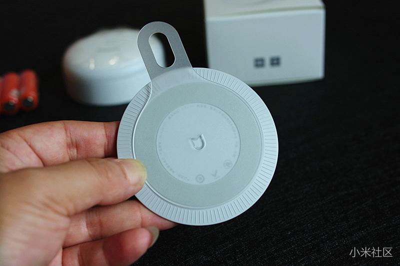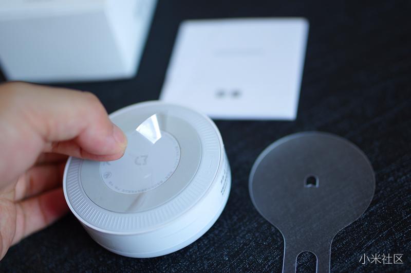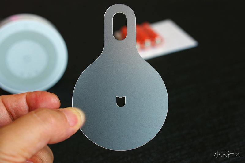 为了保证产品一体性,需要挂装的用户需要拿出这个挂装贴进行安装,取出磨砂质感的塑料薄片贴敷于感应夜灯底部,中心点对准后盖米家LOGO用力压紧,挂架便安装完成。(贴装与挂装只能选择其中一种,安装前需注意)